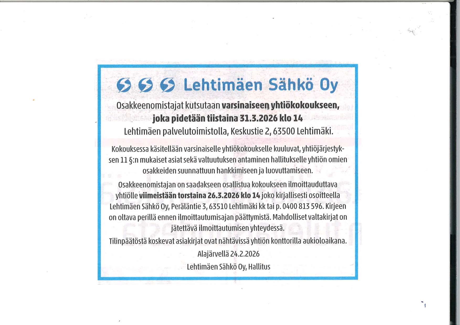 Yhtiökokous 31.3.2026